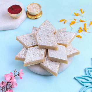Floral Designer Rakhi With Kaju Katli