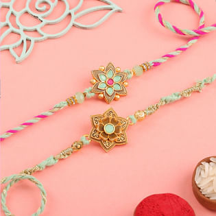 Set Of Two Floral Dial Rakhis With Sweets