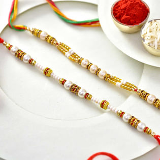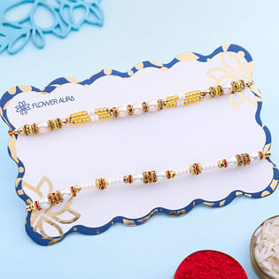 Lavender Beads Bhai Bhabhi Rakhi Set
