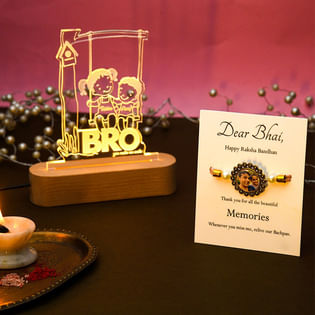 Personalised Rakhi with Acrylic Lamp n Chocolates