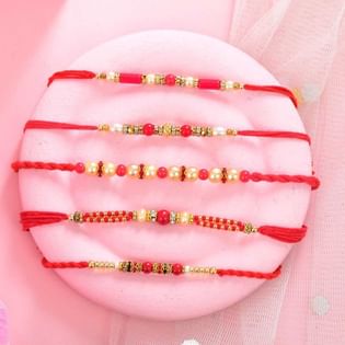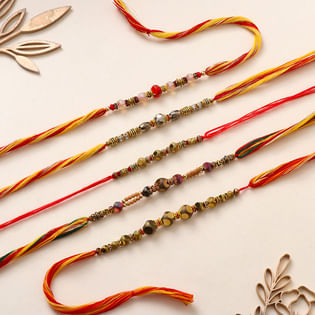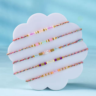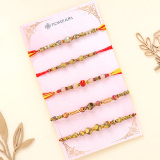Set Of Five Soft Hues Beaded Rakhis