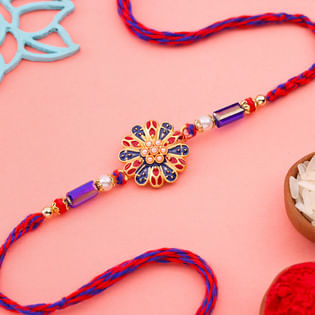 Blue Floral Rakhi With Sweets N Snacks