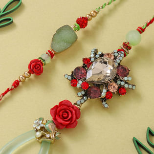 Crimson Roses N Crystals Bhaiya Bhabhi Rakhis