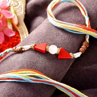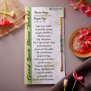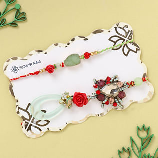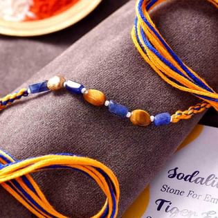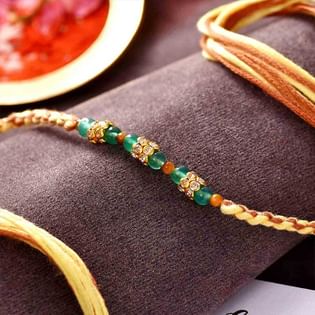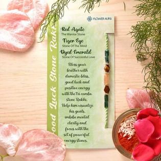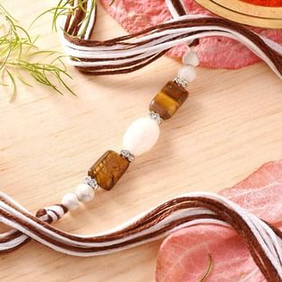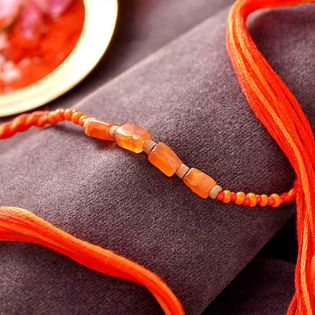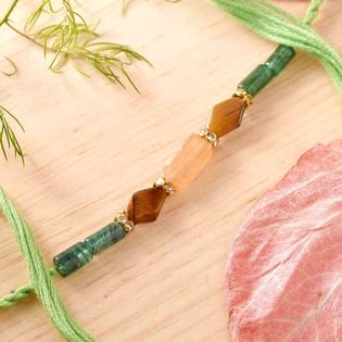Emerald Red Agate N Tiger Eye Semi Precious Stone Rakhi