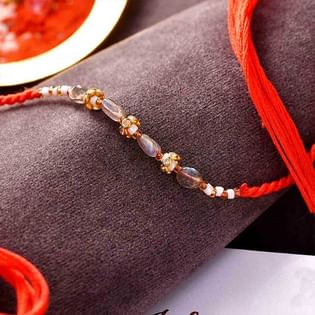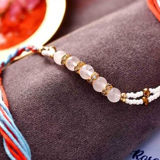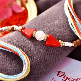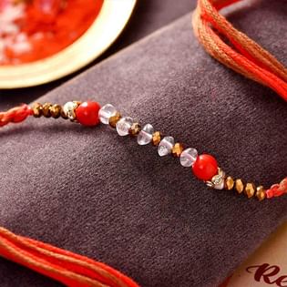 Dyed Coral And Rose Quartz Semi Precious Stone Rakhi