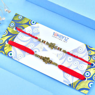 Gold Accents Rakhi Duo N Gourmet Treats Hamper