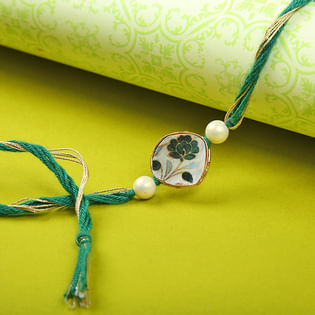 Pearl Rakhi with Coffee Beans Mug & Cookies