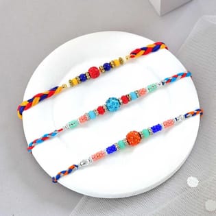 Beaded Rakhis With Chhappan Bhog Pista Rolls N Dalmoth