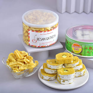 Set Of Two Rakhis With Besan Gathiya N Batisa