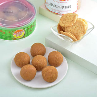 Set Of Two Rakhis With Besan Laddo N Mathri