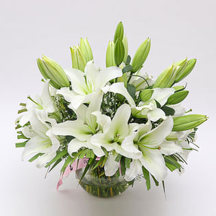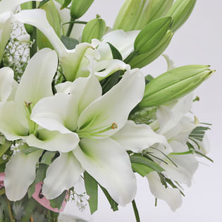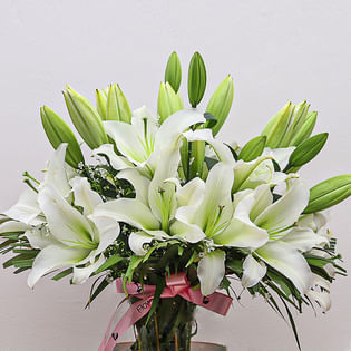 • - Arrangement of 7 Pink Oriental Lilies And 10 Pink Roses