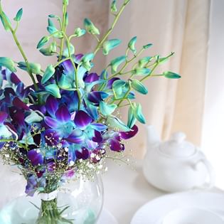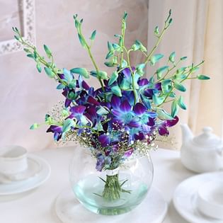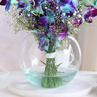 Blue Orchids Bouquet N Choco Cake