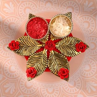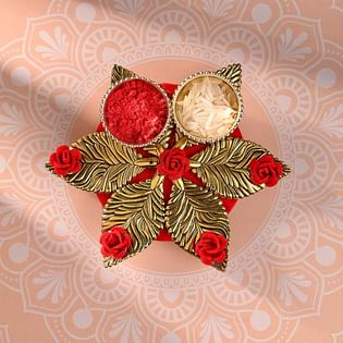 Golden Leaf N Rose Floral Bhai Dooj Thali-UAE