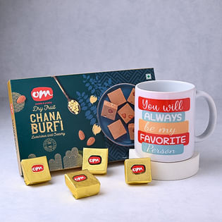 Om Sweets Chana Burfi With Bhai Dooj Thali N Mug-UAE