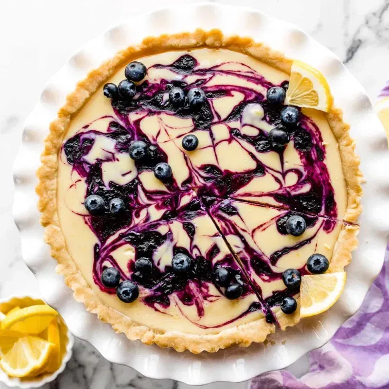 This blueberry tart cake is a stunning blend of tangy blueberries swirled into a rich, creamy filling, all nestled inside a crisp, buttery crust. The tart cake's vibrant purple swirls and fresh blueberries on top make it a visual treat as well as a delightful dessert. Each bite is a perfect balance of sweet and tart, with the creamy filling melting seamlessly with the burst of blueberries. Whether for a special occasion or a simple indulgence, this tart promises to add elegance and flavour to any gathering.