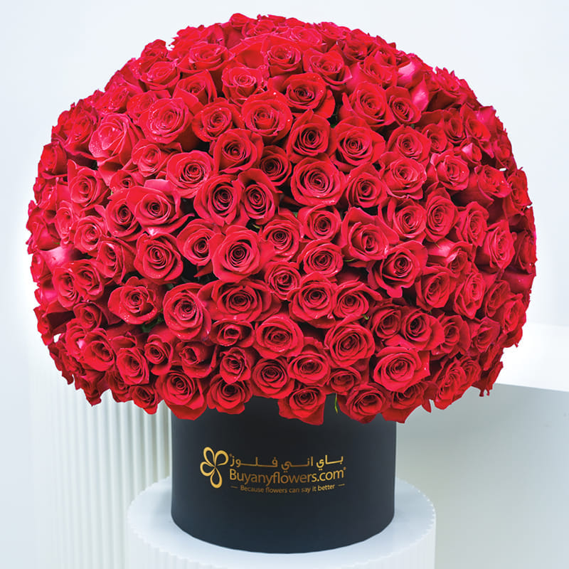 This exquisite flower arrangement features vibrant red roses, each representing passion, love, and admiration. Carefully arranged in a round shape and elegantly presented in a sleek black box, this bouquet is a stunning display of affection. The rich, bold colours of the roses create a striking visual impact, making it an ideal gift for any romantic occasion. Perfect for expressing your deepest emotions, this luxurious bouquet makes an unforgettable gift for occasions like Anniversaries, Valentine’s Day, or for just because moments of love.