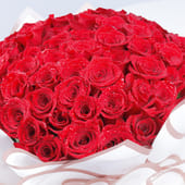 A gesture that speaks directly to the heart, this bouquet is a declaration of love. A symphony of deep red, wrapped in an elegant white-gold border, evokes the passion of a love story unfolding. The deep, rich roses are encircled with delicate red paper and tied with a sophisticated black ribbon, creating a timeless gift. Perfect for marking unforgettable moments or simply expressing your feelings, it’s the kind of gift that lingers long after the petals fall. For a love as infinite as the roses themselves.