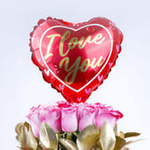 A rich blend of roses, in shades that span from passionate reds to delicate pinks and deep purples, forms a breathtaking display of beauty. Nestled within a sleek black round box, the flowers are complemented by lush greenery, including Pittosporum, Eucalyptus, and Ruscus, creating a harmony that evokes elegance and grace. Topping it all is a shimmering “I Love You” foil balloon, adding a perfect finishing touch. It’s a gift that goes beyond flowers; it’s a heartfelt message, a gesture of love wrapped in every colour and detail. The ultimate romantic gesture for those you cherish the most.