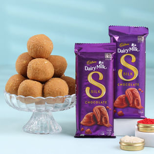 Pastel Bhaiya Bhabhi Rakhi Set With Besan Laddoos-UAE