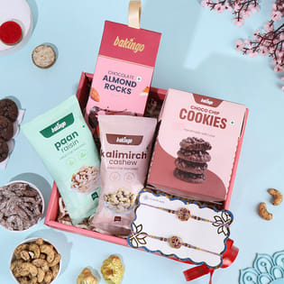 Lavender Rakhi Duo With Nuts N Cookies-UAE