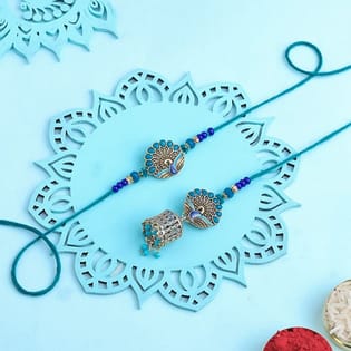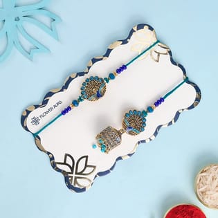 Peacock Charm Bhaiya Bhabhi Rakhi Set-UAE