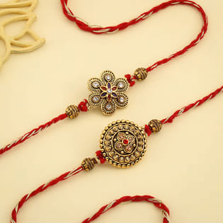 Set Of Two Designer Rakhis With Gulab Jamun-UAE