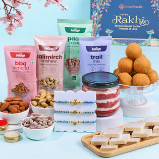 Elegant Floral Rakhi Duo With Nutty Delights-UAE
