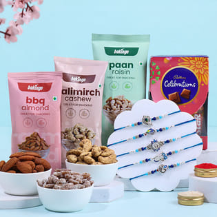 Divine Rakhi Trio With Sweets N Gourmet Delights-UAE