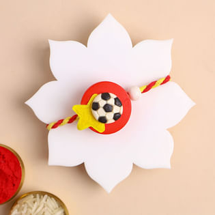 Vibrant Hues Floral Rakhi Duo With Kaju Katli-UK