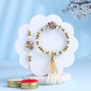 Pearl Bling Bhai Bhabhi Rakhi With Hazelnut Choco-UK