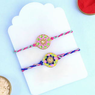 Pristine Pearls Couple Rakhis With Salted Pista Nuts