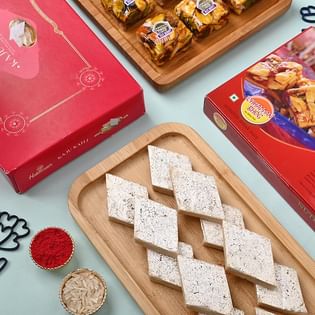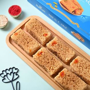Silver Mirror Work Rakhis With Haldiram Milk Cake