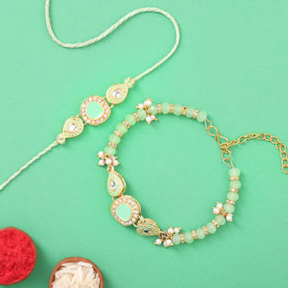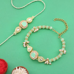 Mint Kundan Bhaiya Bhabhi Designer Rakhi Set-USA
