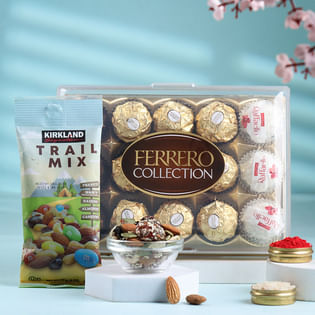 Vibrant Stone Rakhi With Chocolates N Trail Mix