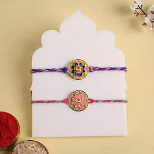 Floral Mandala Rakhi Duo With Sweet Bites