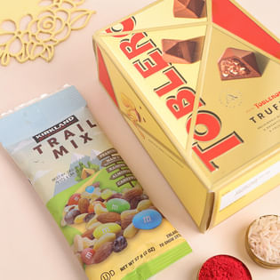 Golden N Purple Floral Rakhi Duo With Lindt Bars