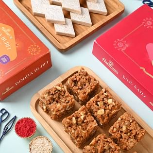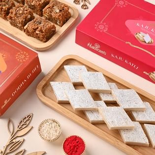 Elegant Rakhi Set With Haldirams Dhoda Burfi N Kaju Katli