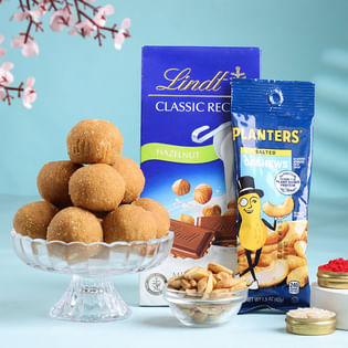 Elegant Rakhi Trio With Nutty Treats