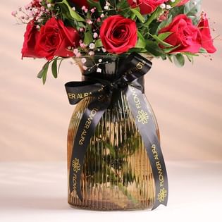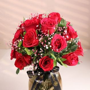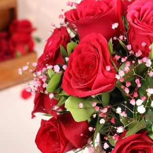• - Arrangement of 20 Red and Pink Roses in White Floweraura Box
