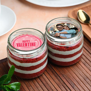 Happy Valentine Red Velvet Jar Cake Duo